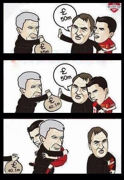 Then they decide there is a clause that allows Suarez to move if any bid over 40 mill comes in and Arsenal offer 40 mill and a quid.