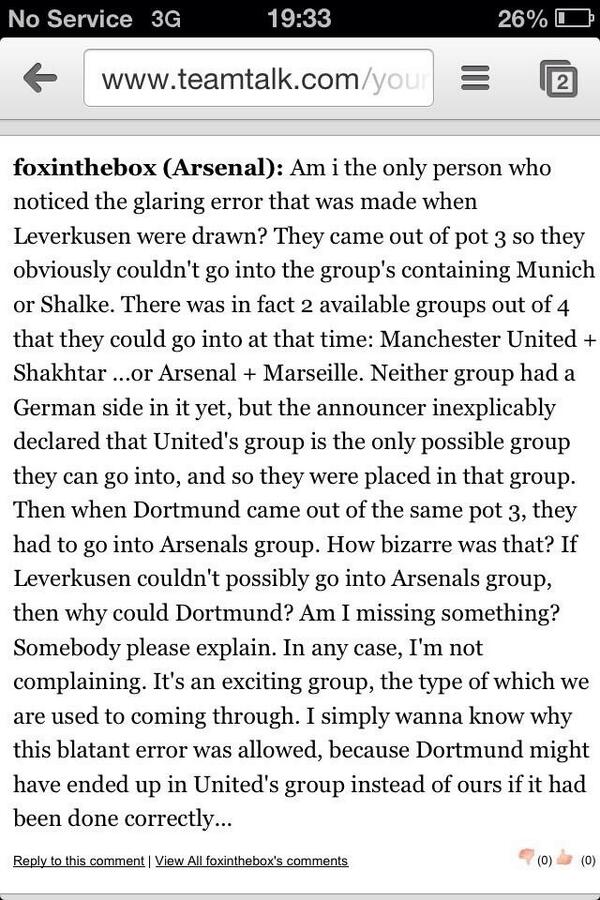 Today’s post will be a rather unusual one. It is a direct response to a post I read. You can read it here–> http://www.goal.com/en/news/1717/editorial/2013/08/27/4215326/arsenal-should-not-be-a-pot-1-team-uefa-must-overhaul?ICID=HP_HN_1. Basically (for those who don’t have time to go through it) it is advocating for a system where Champions league seeding is done based on meritocracy. In other words you are seeded based on how far you went the previous season. As you can imagine, it is a post aimed at the Arsenal’s and Man Utd’s of this world, who have been seeded first for as long as I can remember yet haven’t even come close to winning it recently.