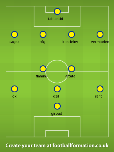 So maybe, he will go for this more adventurous line-up (with one of Flamini and Arteta):