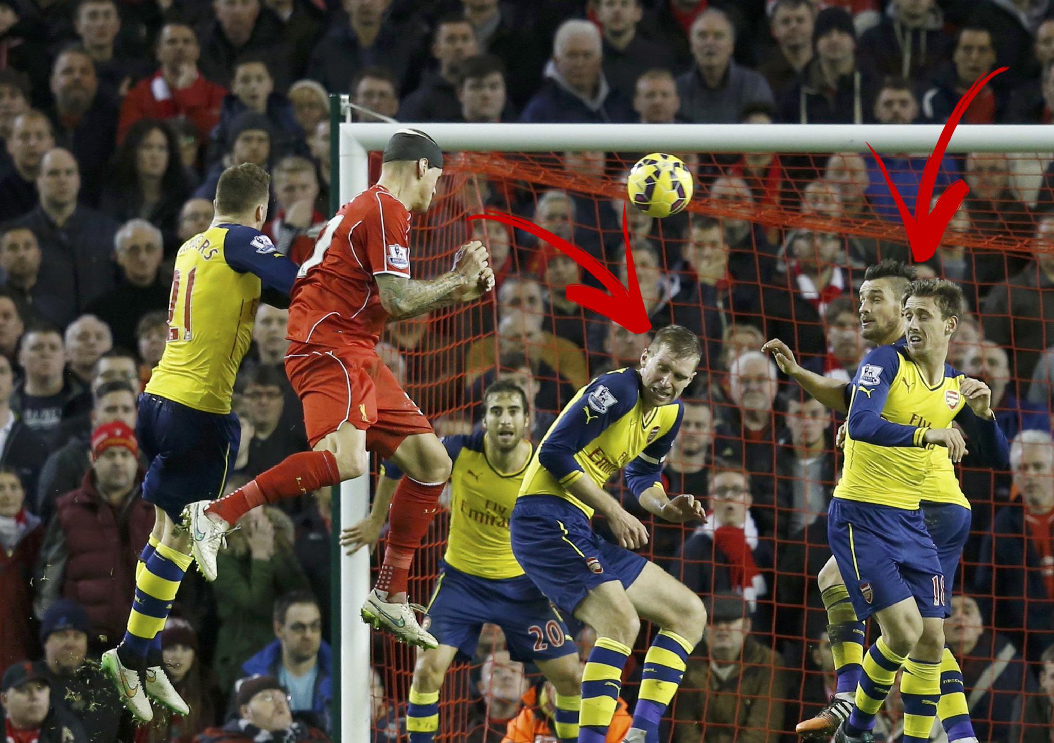 That picture sums it all up. It is quite funny and shocking that a Giant like Mertesacker, a player taller than everyone else on the pitch, would “coward” down like this when it mattered the most. He didn’t even attempt to jump. And this is supposed to be an experienced international (albeit retired now), someone renowned for his organizational skills, and worse your Captain, hahahaha…