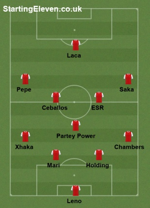 Subs: Leno, Cedric, Chambers, Marí, Partey, Willian, Pepe, Nelson, Nketiah