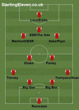 I’m not sure that Arteta can or will make any changes from Wednesday, he’s unlikely to risk Tomiyasu as we’re gonna need him for the run-in and Soares has done ok, so same starting XI.