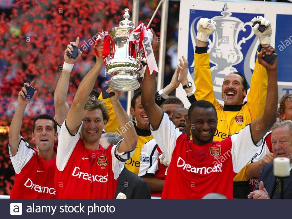 Disciplinary problems beset Patrick during his time with Arsenal and it was feared that he was prepared to turn his back on English football as he felt victimised. Wenge, several Arsenal players and fans supported him publicly, amid speculation that Italian club Juventus were prepared to offer Vieira an escape route. However Patrick stayed and Arsenal finished second in the league for a third consecutive season and runners-up to Liverpool in 2001 FA Cup Final. He was later named the club vice-captain, to ensure he would succeed Tony Adams as captain. In the 2001–02 season; Arsenal regained the league and beat Chelsea in the 2002 FA Cup Final to complete a second double. In 2003, Patrick missed Arsenal’s title run-in, due to a knee injury, and they were overtaken by Manchester United who took first place. He was also ruled out of the 2003 FA Cup Final, which Arsenal won, but jointly lifted the trophy with captain for the day, David Seaman.