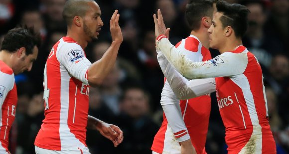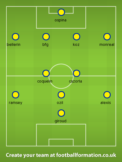 Luckily, the ‘here we go again ‘glass half empty supporters’ favourite train of thought was quickly derailed with a blitz-krieg brace by super-sub Ollie. First he resolutely connected with his left thunderbolt foot with a fine wing-cross by Gibbs from around the edge of the box to put us in front, and a couple of minutes later he put the game to bed with the finest, almost delicate, of diagonal headers over the scrambling keeper from a fine corner by Mesut. 1-3 to the mighty Red and White North Londoners, and then Alexis added another with some very cheeky close control and finish right in front of the goalmouth.