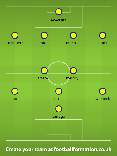 - We did not miss the BFG today. The tactics to push Boro high up the pitch and not let them get into play suited two fast CBs today, as we played a high line for which we need fast defence players in case the opposition spring a counter-attack on us or play one over the top. We might well see Wenger swapping between different styles of play depending on the opposition going forward, with him choosing two out Koz, BFG and Paulista to suit a particular style/ tactics… TBC.