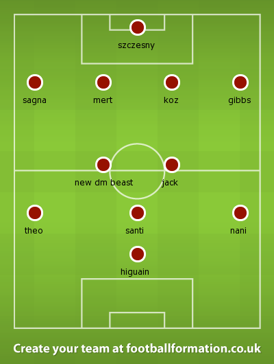 But, with our strong interest in Higuain, it could be that Arsene is thinking of a front three of Theo – Higuain – Nani. With Jack or Cazorla in the hole, this could become quite an attractive formation for us.It could actually work a treat!