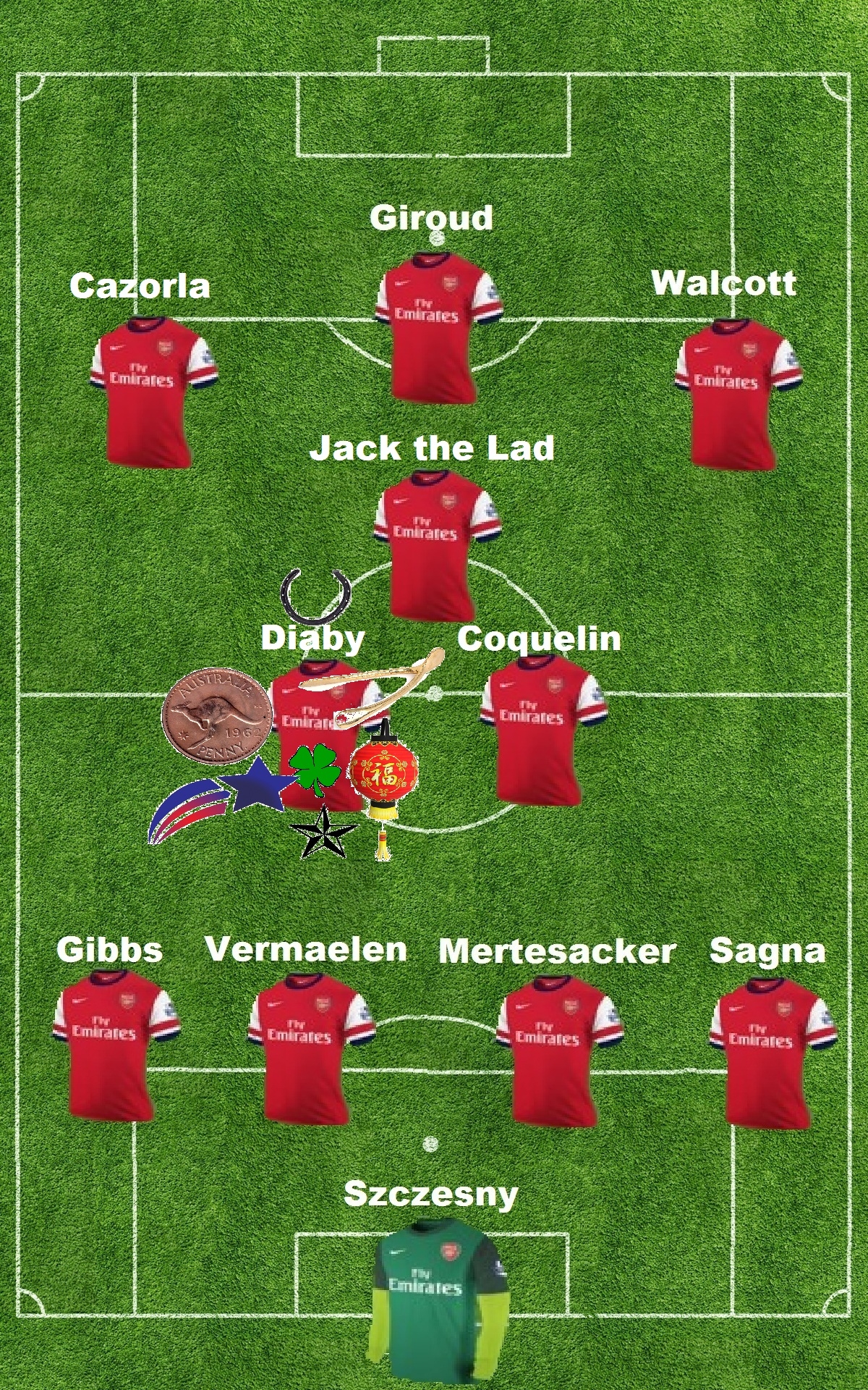 Optimistically, I am hoping we do not see Theo start in the middle again. He’s been okay the last two games, but we need better than okay. To me he walks around like Henry, you know; with a bit of a swagger. He doesn’t bust a lung, he doesn’t chase, and most of all he has not earned that right! He tends to time his runs too soon leaving the midfielders with no outlet and he gets muscled off the ball too easily. I’m hoping Giroud slips back in to test the average Williamson (Santi and Ox should try their best to attack him at all costs); just like Bendtner did a couple of seasons back.