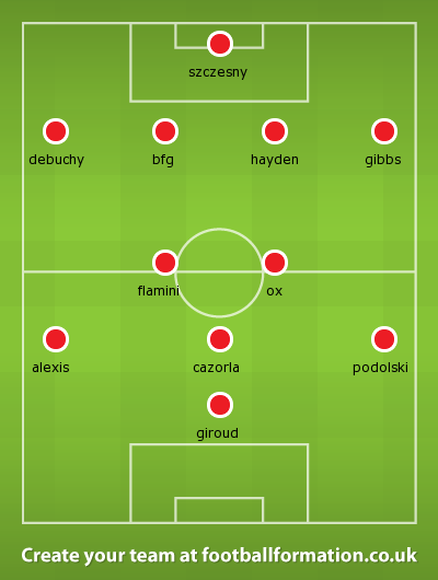 Subs: Martinez, Debuchy, Bielik, Gibbs, Zelalem, Elneny, Campbell, Willock, Reine-Adelaide, Akpom