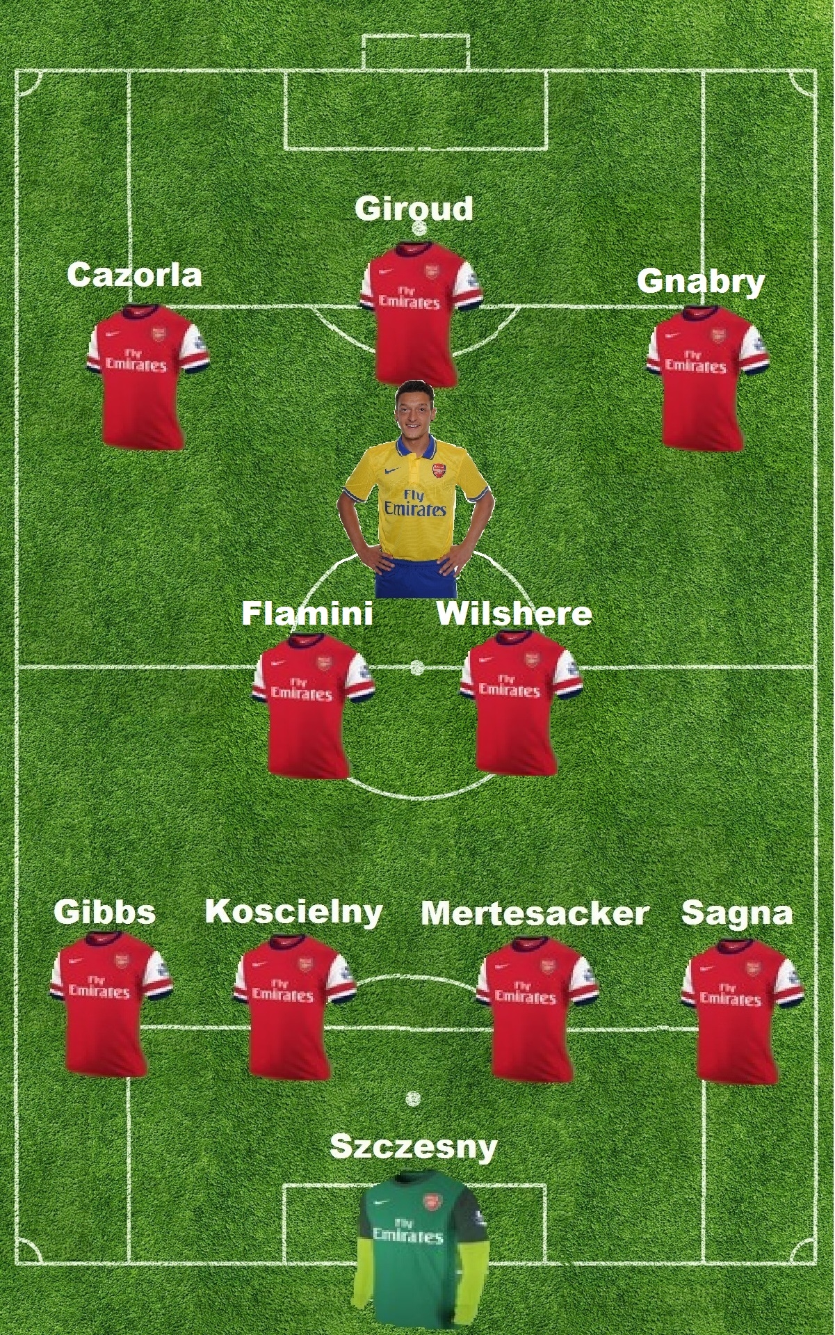 The back four picks itself thanks to injuries. I expect Jack the lad to continue next to the junkyard dog Flamini. Ozil behind Giroud, Santi on the left, and Gnabry down the right. The only question mark is whether or not Arsene plays Podolski down the left. Gnabry down the right is a must because Fulham have really struggled on their left this season. Give the boy some legroom and he’ll make you pay! Draxler!